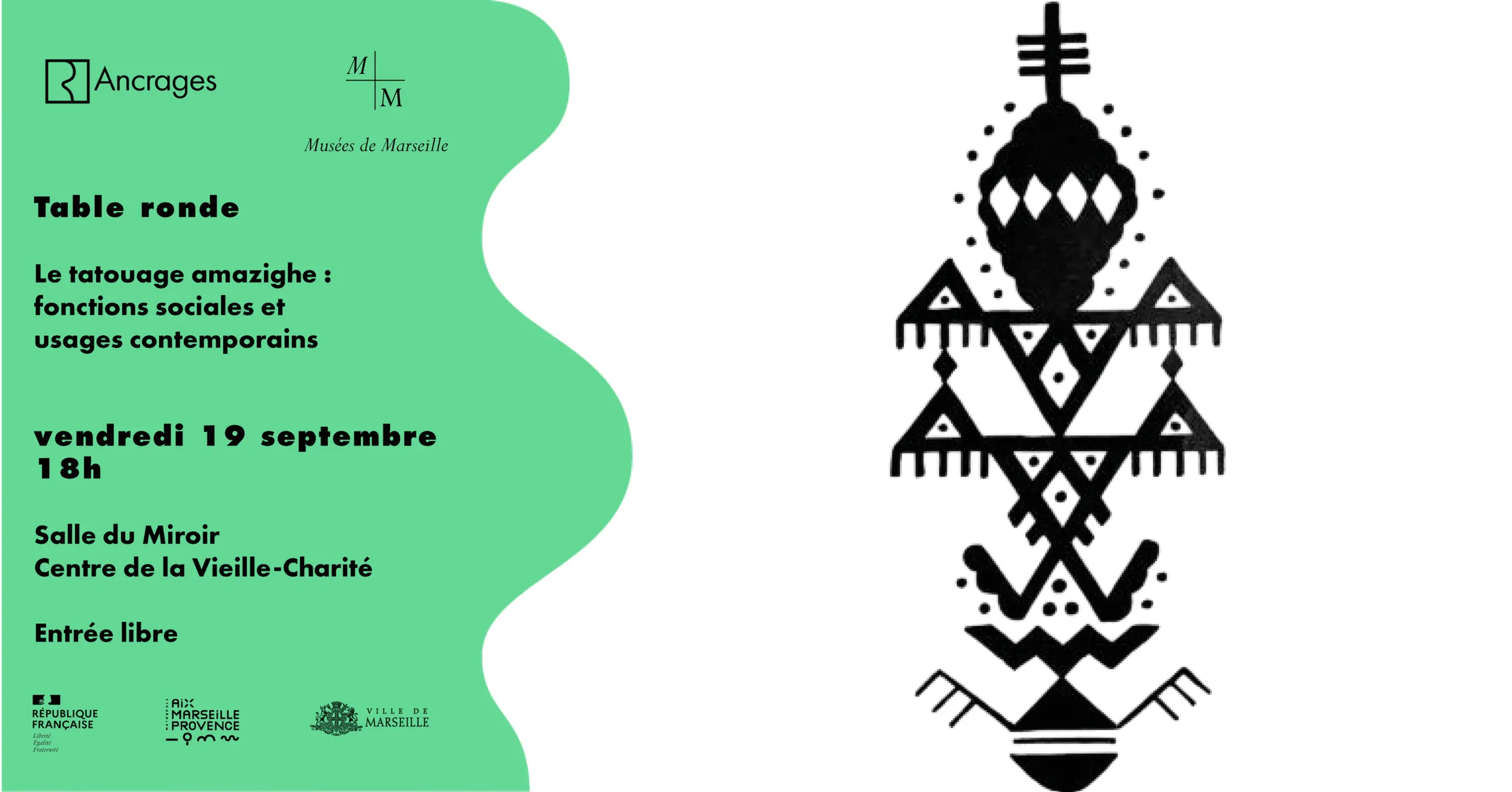J’aurai le plaisir de faire partie de la table ronde organisée par l’association Ancrages autour des tatouages amazighs, l’occasion de parler des inspirations que j’en tire à travers mon histoire familiale pour créer autour du spectacle vivant et de la reconnexion au matrimoine amazigh.