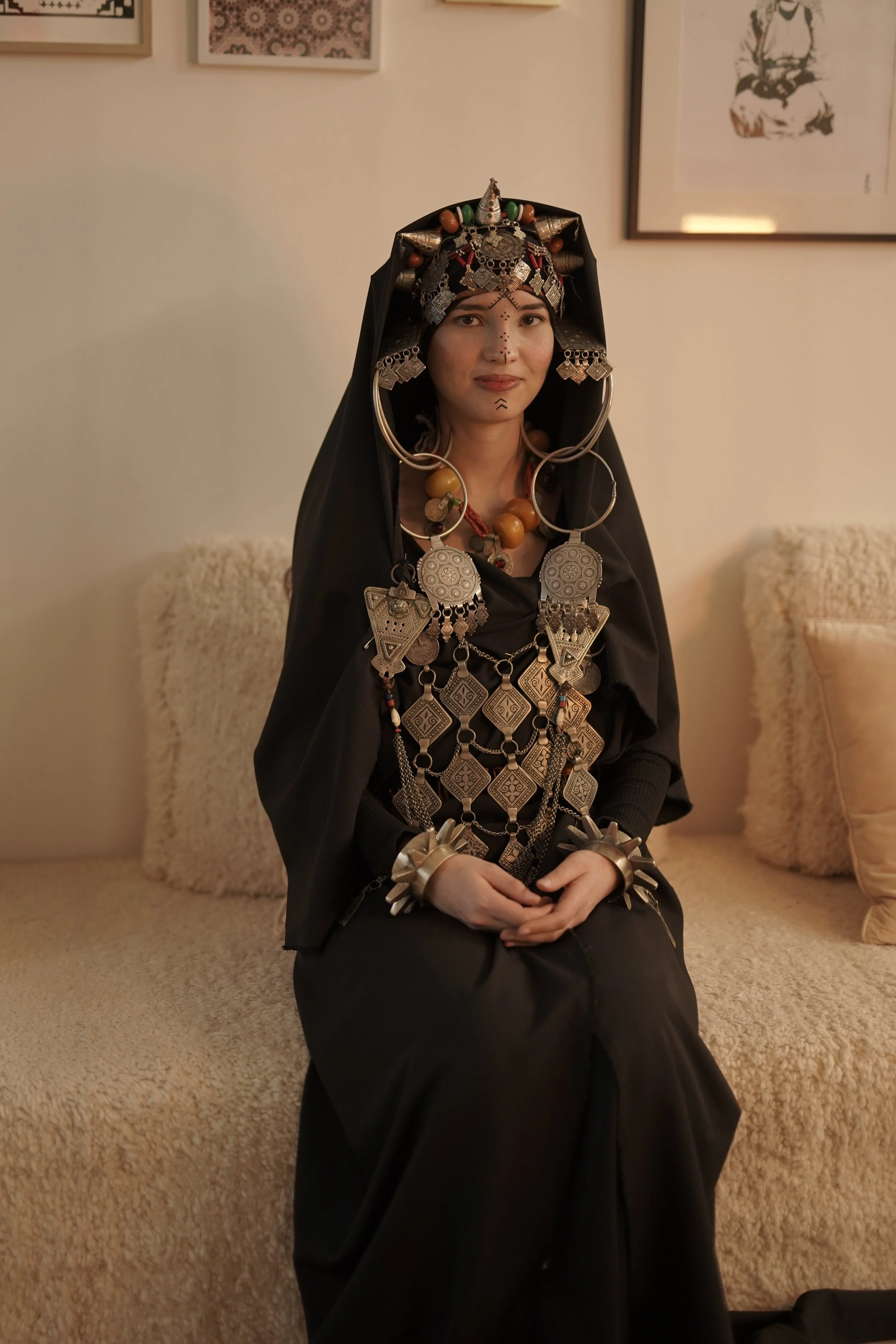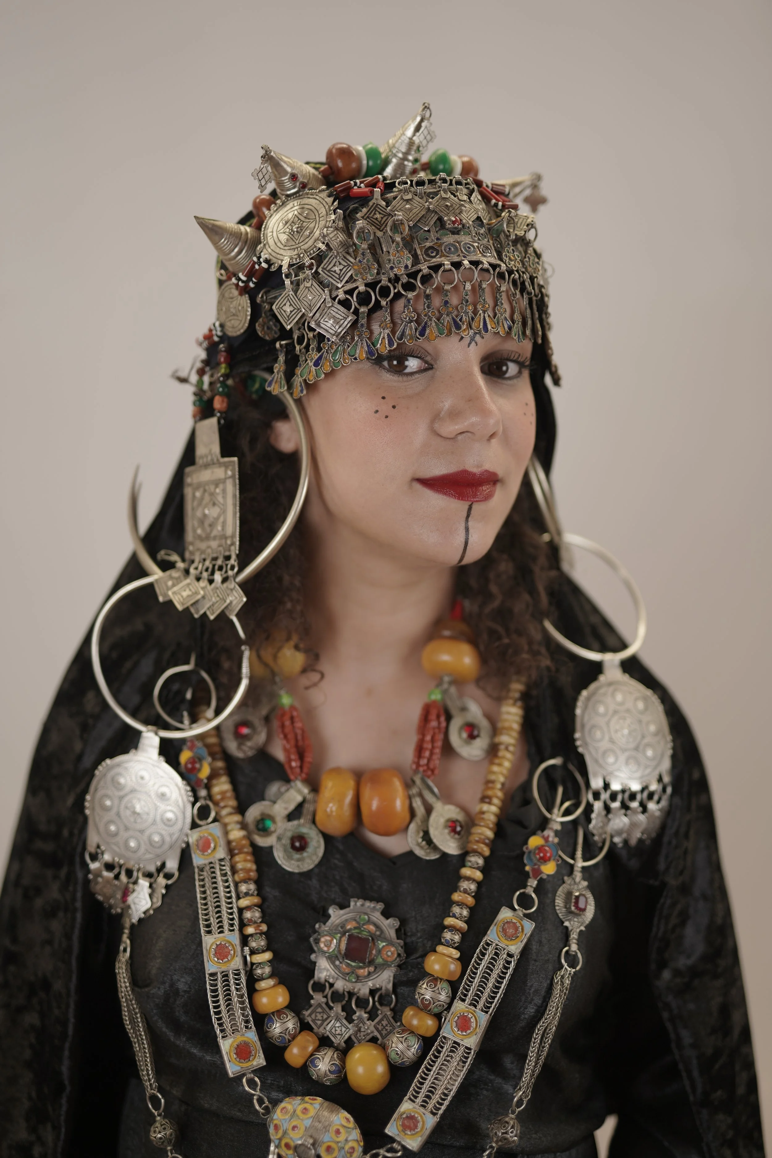 Plongez dans l’univers du matrimoine amazigh à travers une séance photo artistique où chaque détail – bijoux, tatouage éphémère, vêtements, symboles devient porteur d’histoire.